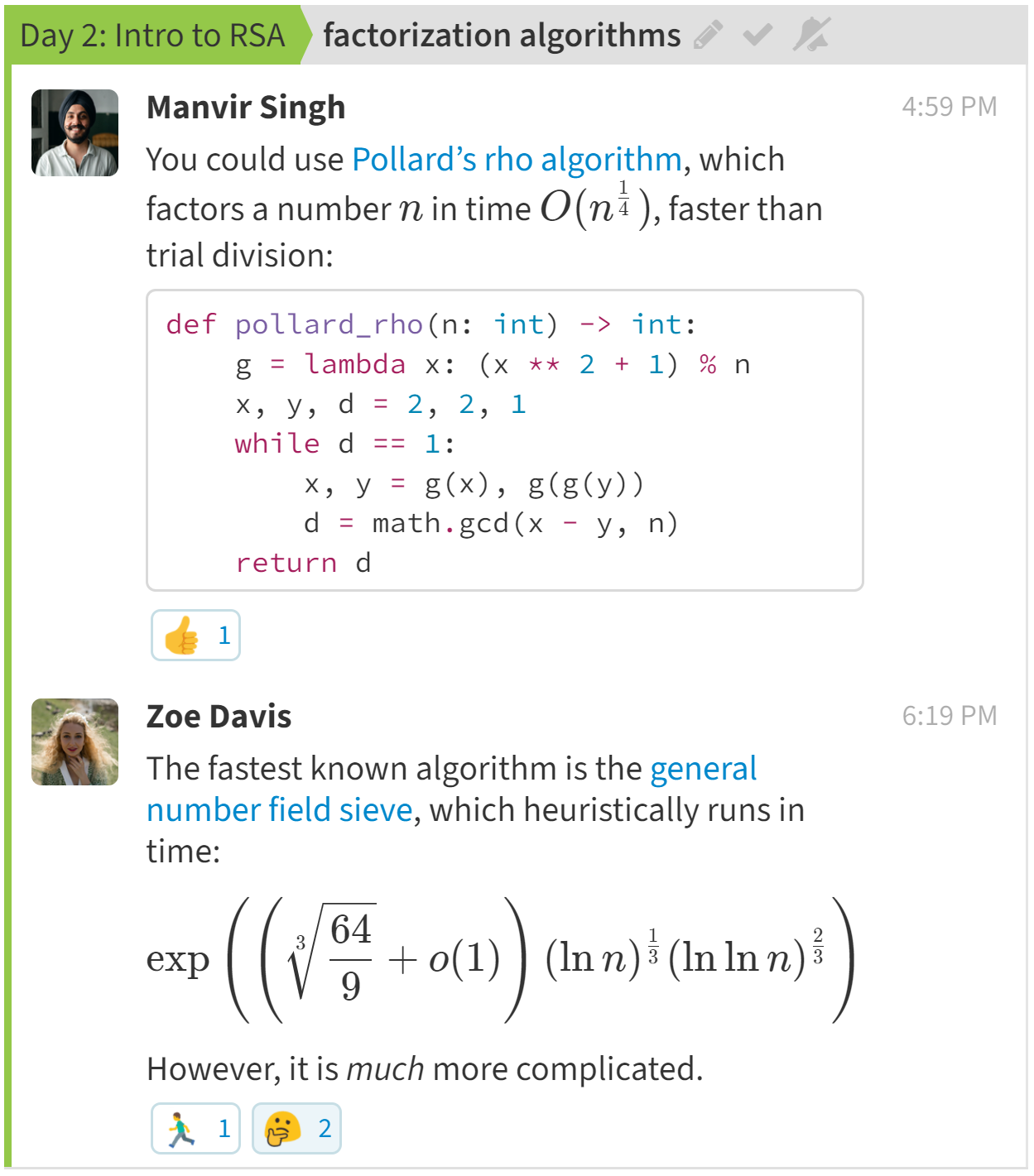 I've been using @zulip recently for my research collaborations, and I was pleasantly surprised how effective it is! The excellent LaTeX rendering and clever threading make it far superior to email and Slack. I found myself shifting most of my research correspondences to Zulip.
